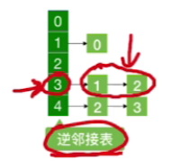 补充:一个和邻接表很类似的一种存储的方式逆邻接表,逆连接表当中每一个顶点所对应的这些边的信息其实指的是指向这个顶点的这些边(入边)