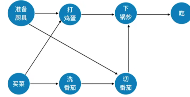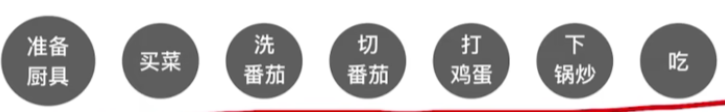 - 我们要做番茄炒蛋,那么这个大工程其实我们可以从这样的准备厨具,买菜作为起点