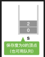 那可以发现当前入度为0的顶点有0号顶点和2号顶点,所以这两个顶点的下标数值就会被放到栈里边进行一个保存