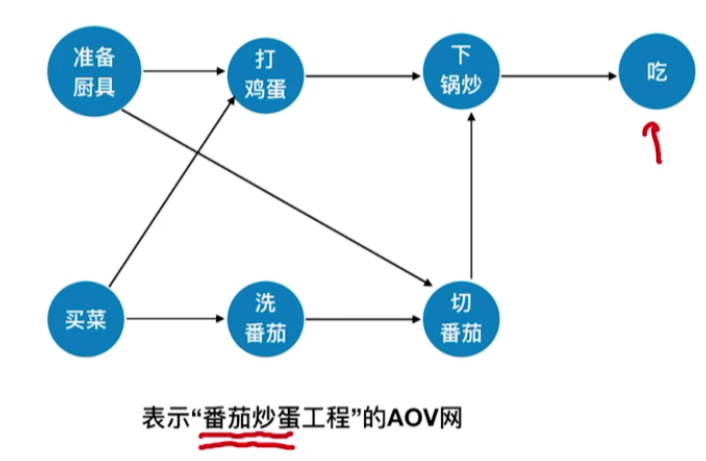 - AOV网(Activity On Vertex Network,用顶点表示活动的网)