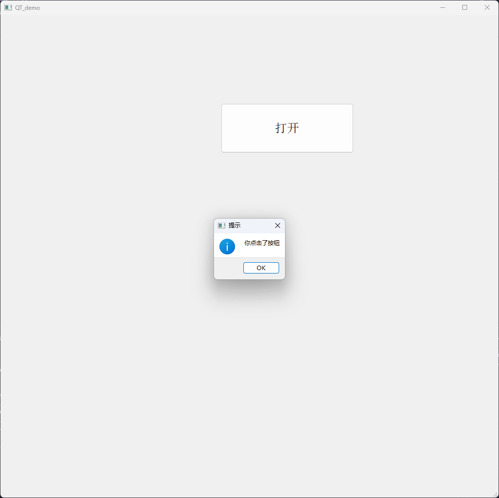 QtWidgets.QMessageBox.information(self.pushButton, "提示", "你点击了按钮")