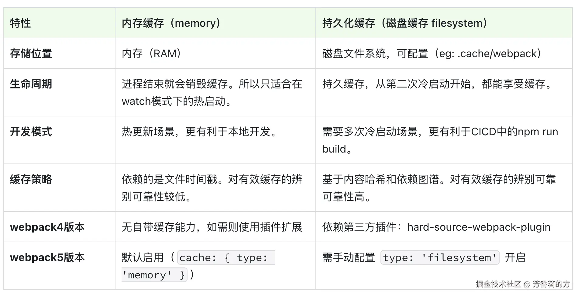 Webpack 缓存分为:内存缓存 与 持久化缓存