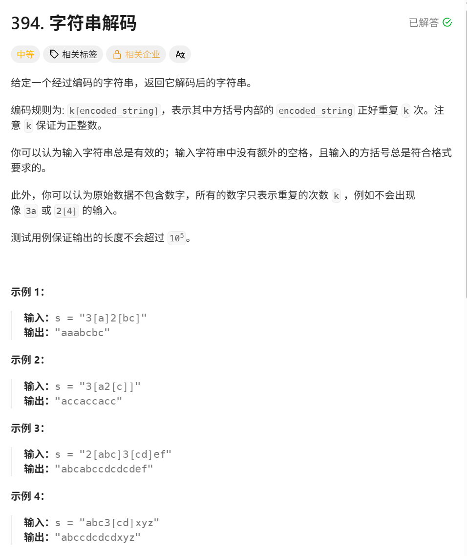 [四. 力扣 394. 字符串解码](#四. 力扣 394. 字符串解码)