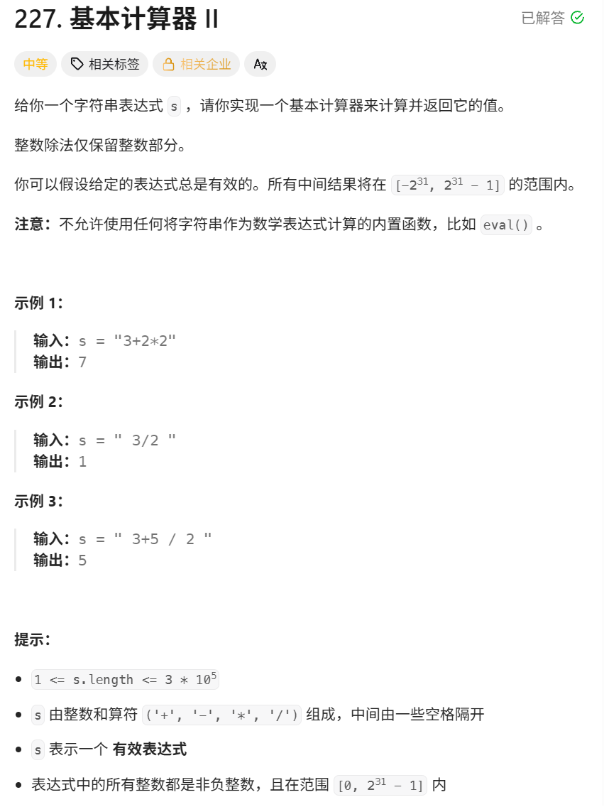 [三. 力扣 227. 基本计算器 II](#三. 力扣 227. 基本计算器 II)