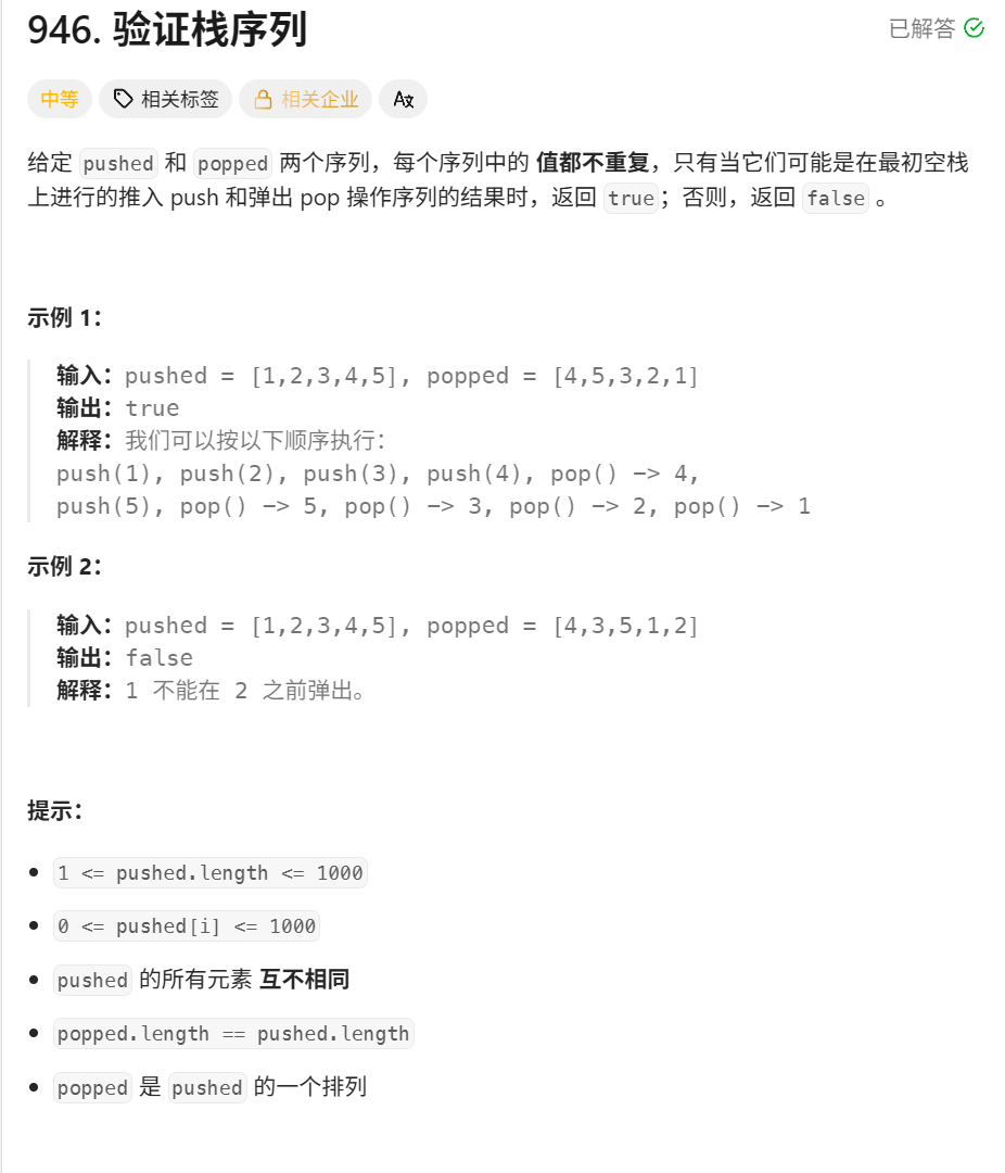 [五. 力扣 946. 验证栈序列](#五. 力扣 946. 验证栈序列)
