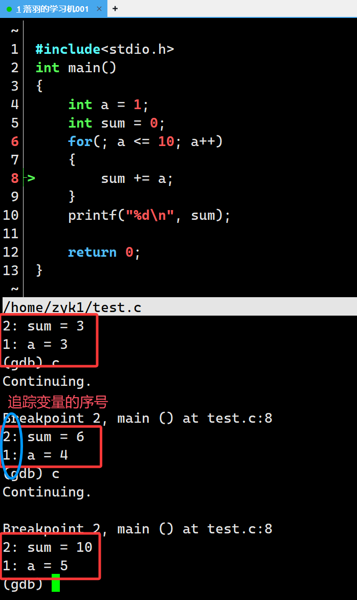 undisplay 变量序号:取消对指定序号的变量的持续追踪显示 -