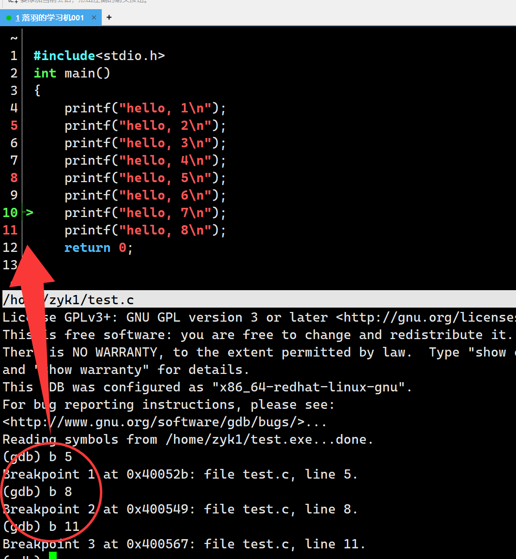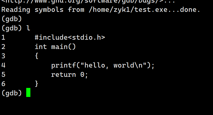 使用gdb,一开始是看不到我们的代码的,要使用l相关命令: