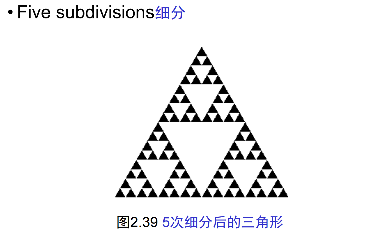 2、让我们先考虑二维的The Sierpinski Gasket(谢尔宾斯基垫):