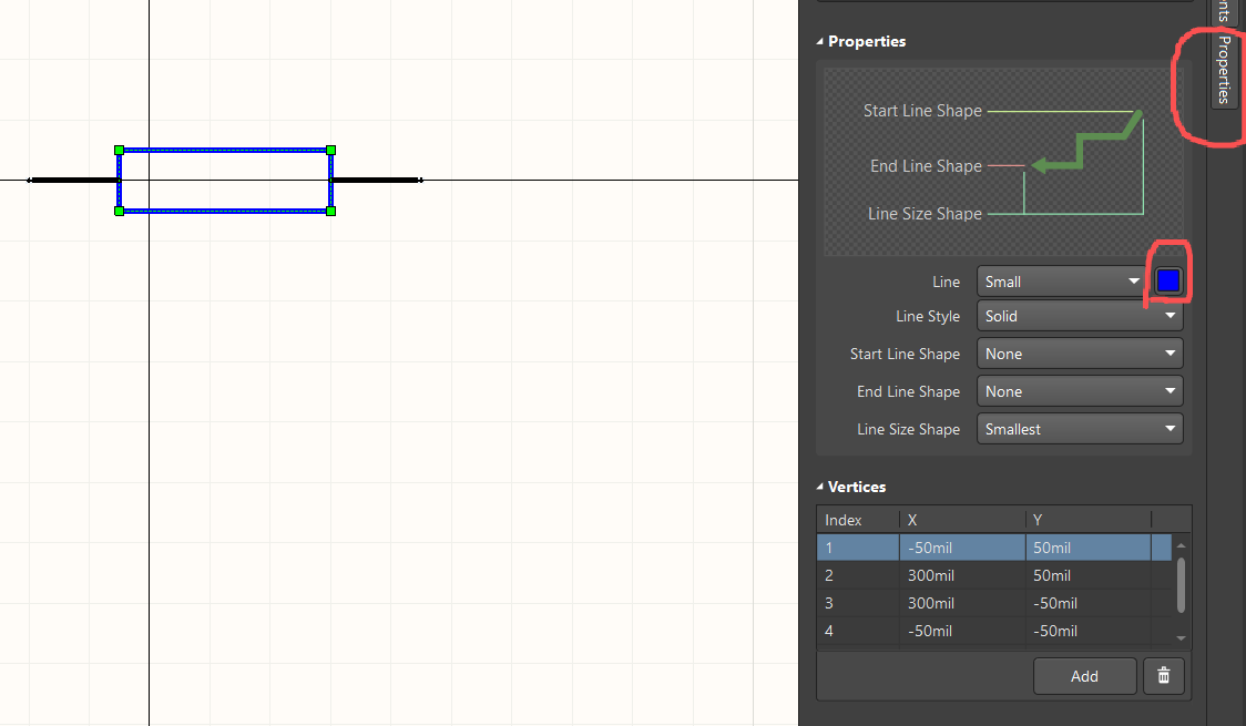 这里修改两条元件线的颜色,可以按住shift同时选中,然后可以在propries里面同时修改元件线的颜色