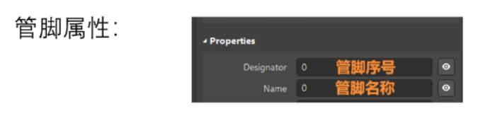 放置完元件之后,点击place pin引脚,添加管脚,双击管脚可以修改管脚属性,下面两个是关键的属性:管脚序号和管脚名称。