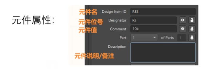 在AD软件右下角的panels菜单里面,勾选properties,可以打开元件属性,相关解释如下