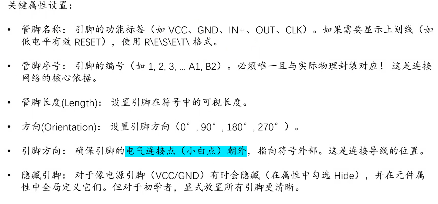 最后注意管脚方向,引脚的电气连接点(小白点)要朝外。