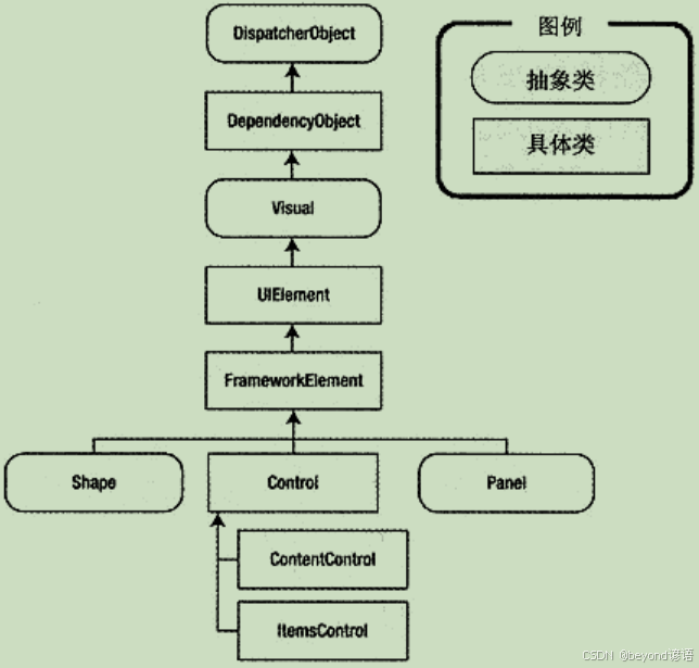 - FrameworkElement 类是 WPF 核心继承树中的最后一站。该类实现了一些全部由 UIElement类定义的成员。例如,UIElement 类为 WPF 布局系统设置了基础,但 FrameworkElement 类提供了支持它的重要属性(如 HorizontalAlignment 和 Margin 属性)。UIElement 类还添加了对数据绑定、动画以及样式等核心特性的支持。