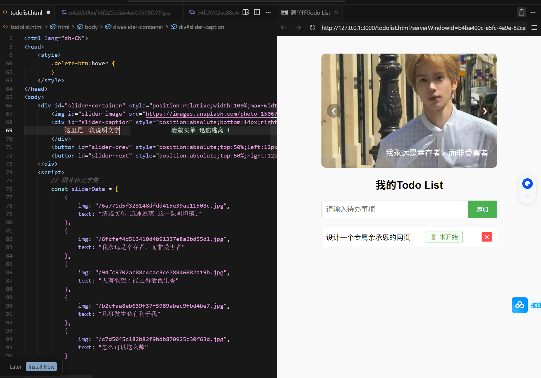 昨晚到现在又有点不想学了,然后去cursor玩了一会,让他帮助我建了一个todolist的网页,太好玩了。追星女看到担就有十足的动力哈哈哈哈