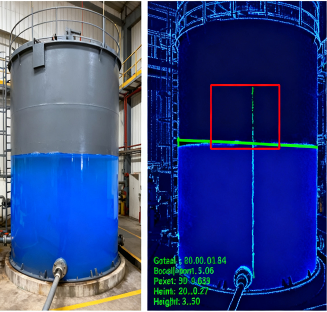 硬件配置:工业相机(安装于储罐侧面观测窗正前方)、LED 背光源(增强液位边缘对比度);
