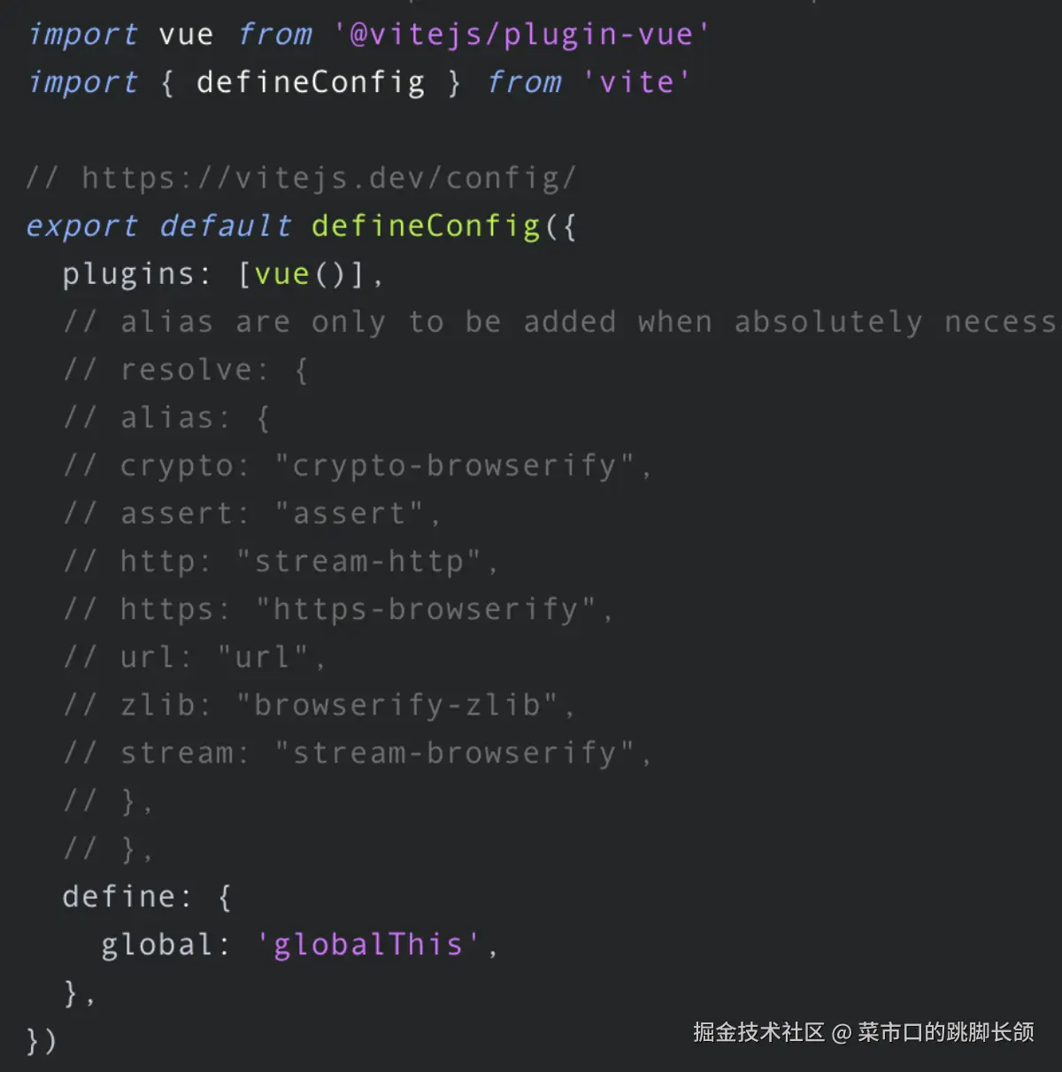 define.global的作用:Vite在构建阶段(包括dev和build)会 把项目中所有出现的global替换成globalThis。- 这种全局替换会影响第三方库的内部模块解析逻辑。