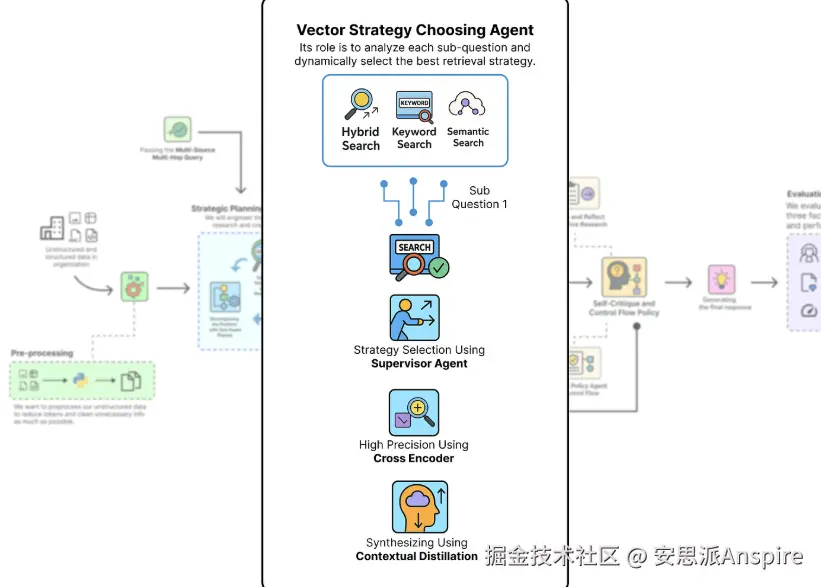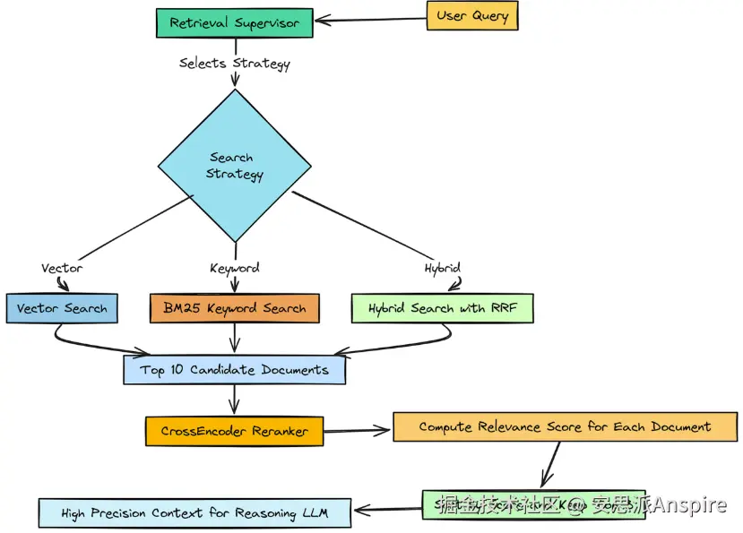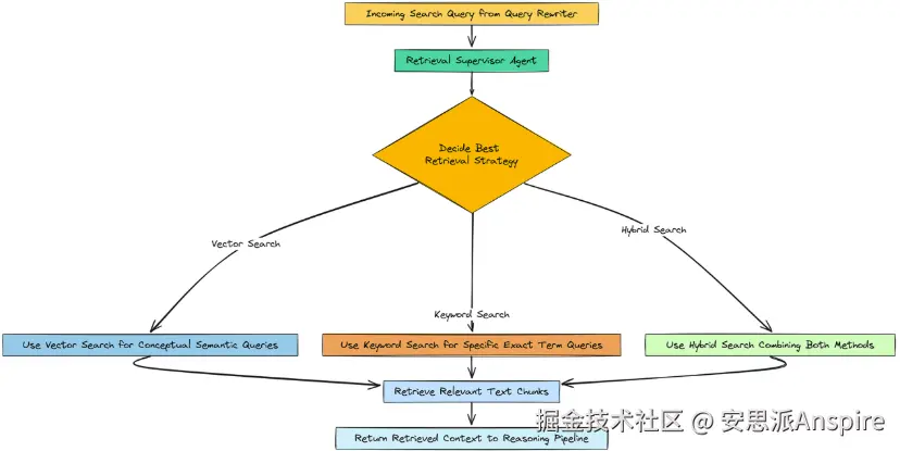 检索主管:我们将构建一个新的主管代理,它将作为动态路由器,分析每个子问题并选择最佳搜索策略(向量、关键词或混合)。