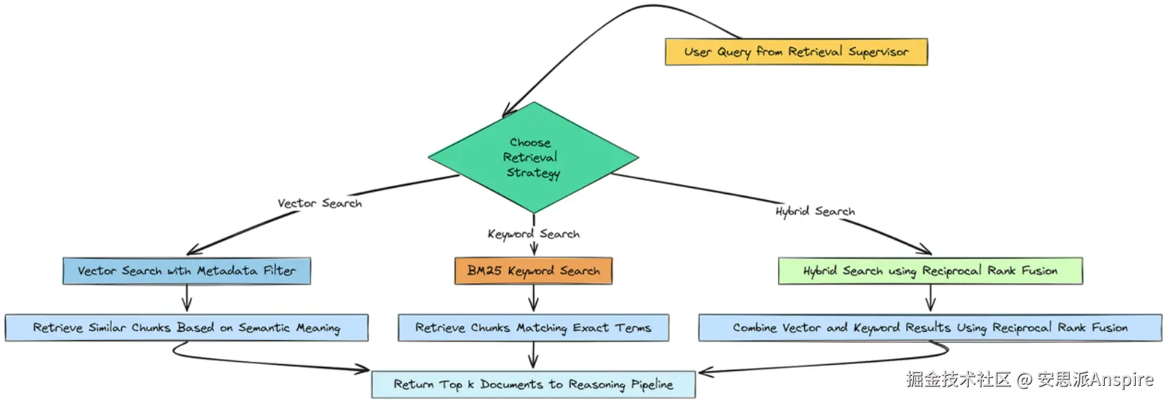**主管:**选择一种检索策略(向量、关键词或混合)。
