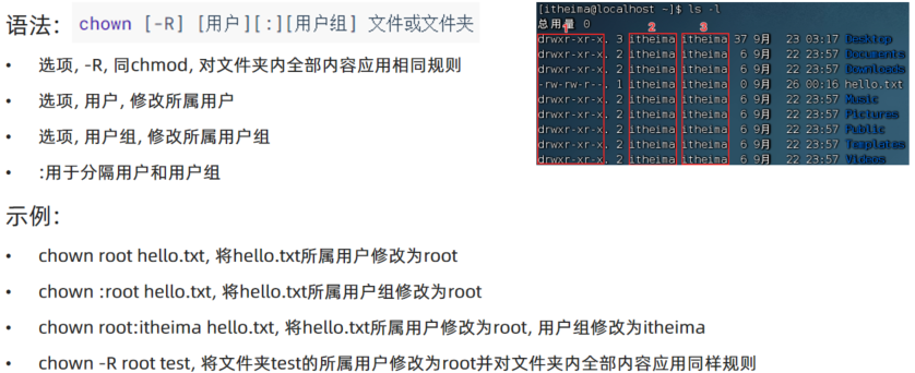 chown [-R] [用户][:][用户组] 文件或文件夹