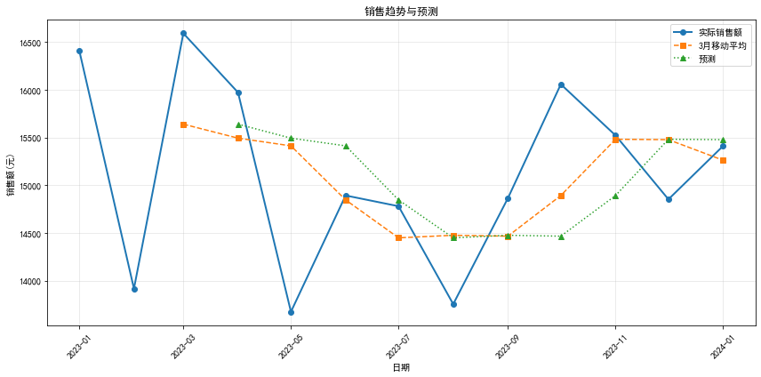 monthly_data['3月移动平均'] = monthly_data['销售额'].rolling(window=3).mean()