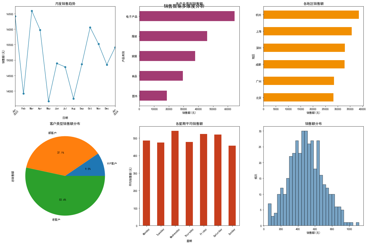 print(f"平均订单额: {df['销售额'].mean():.2f}元")