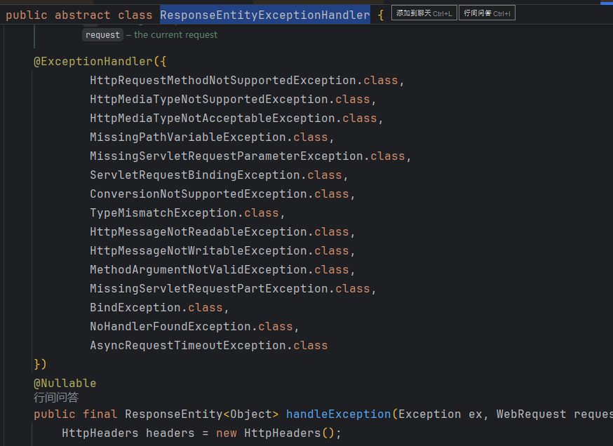@ExceptionHandler主要用来处理对应的异常,其中@ExceptionHandler(Exception.class)是兜底异常,匹配不到的异常最终都会走到里面。