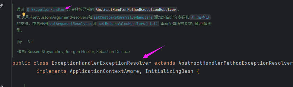 而处理@ExceptionHandler注解的异常处理器是ExceptionHandlerExceptionResolver: