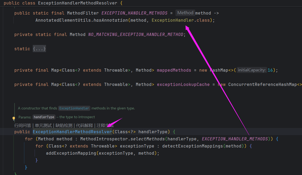 而处理@ExceptionHandler注解的方法是ExceptionHandlerMethodResolver.