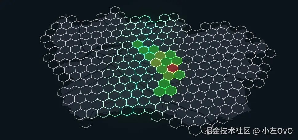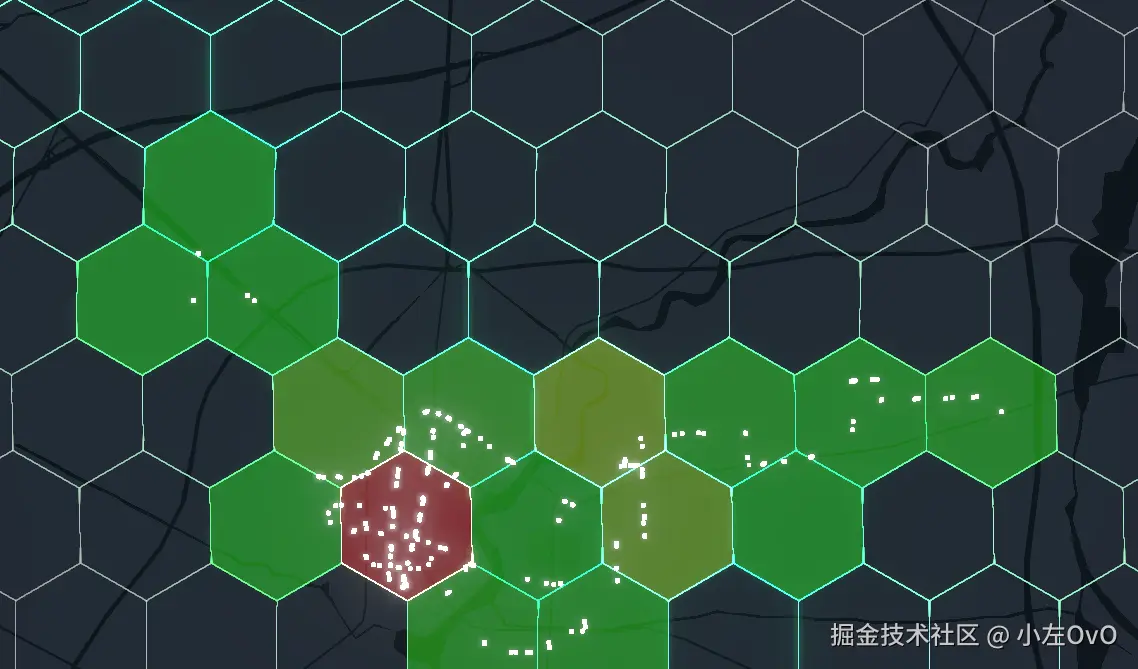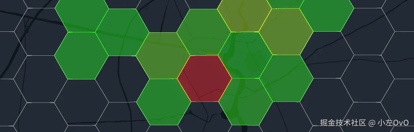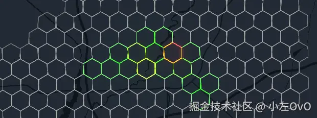 六边形相对比矩形和三角形看起来更专业一点。我们使用 Turf.js 的 hexGrid 函数来生成蜂窝网格(truf也支持三角形和矩形)。