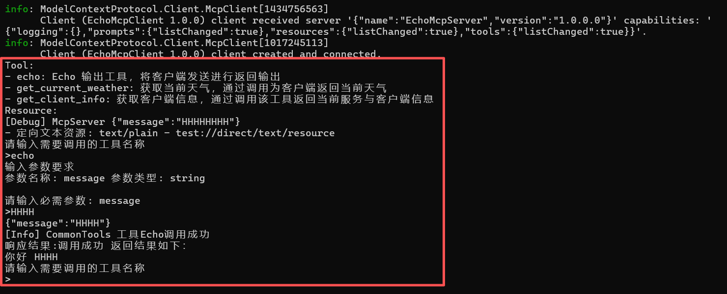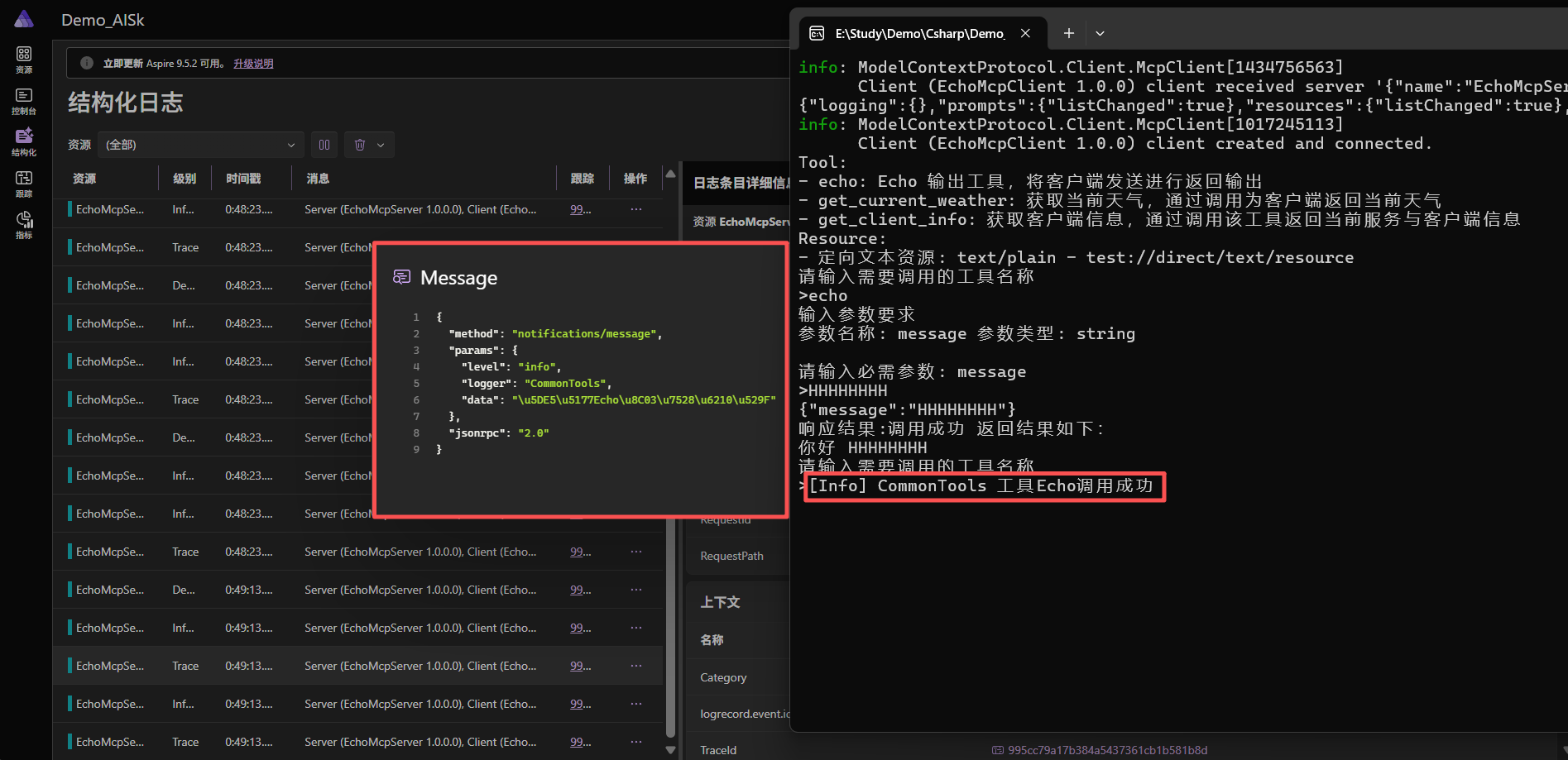 logger.LogInformation("工具Echo调用成功");// 输出日志信息
