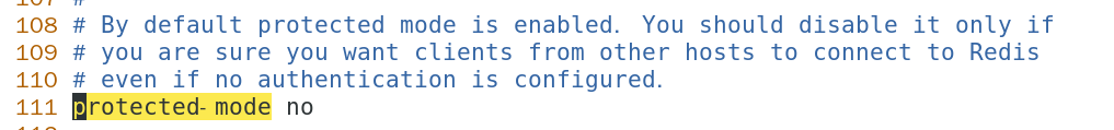 (2)默认protected-mode yes 改为 protected-mode no # 保护模式默认开启,关闭可以让其他人访问