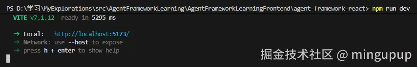 在终端中输入npm run dev运行这个React应用查看效果: