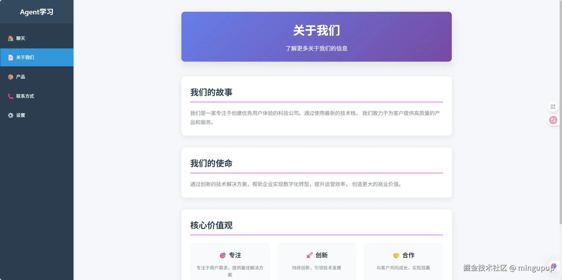 先不用管为什么首页这么不搭,首页被我改过了,反正现在是AI已经帮我完成了我们想要实现的一个效果,现在可以停下来学习一下AI是如何实现的了。