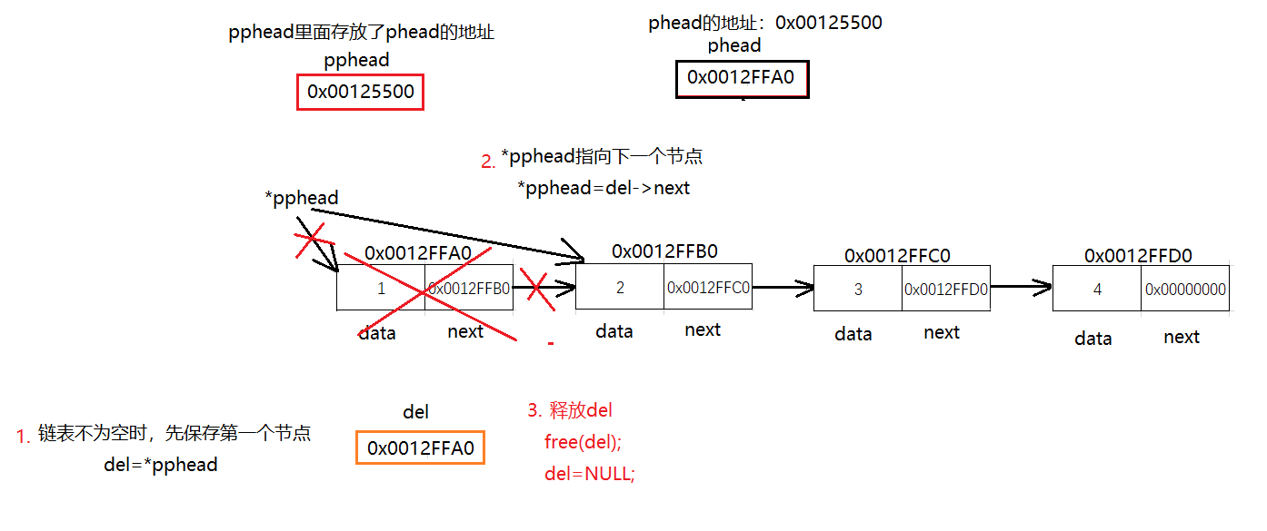 注:链表的头插需要改变的是结构体指针phead,因此在传参时需要传入结构体指针的地址。