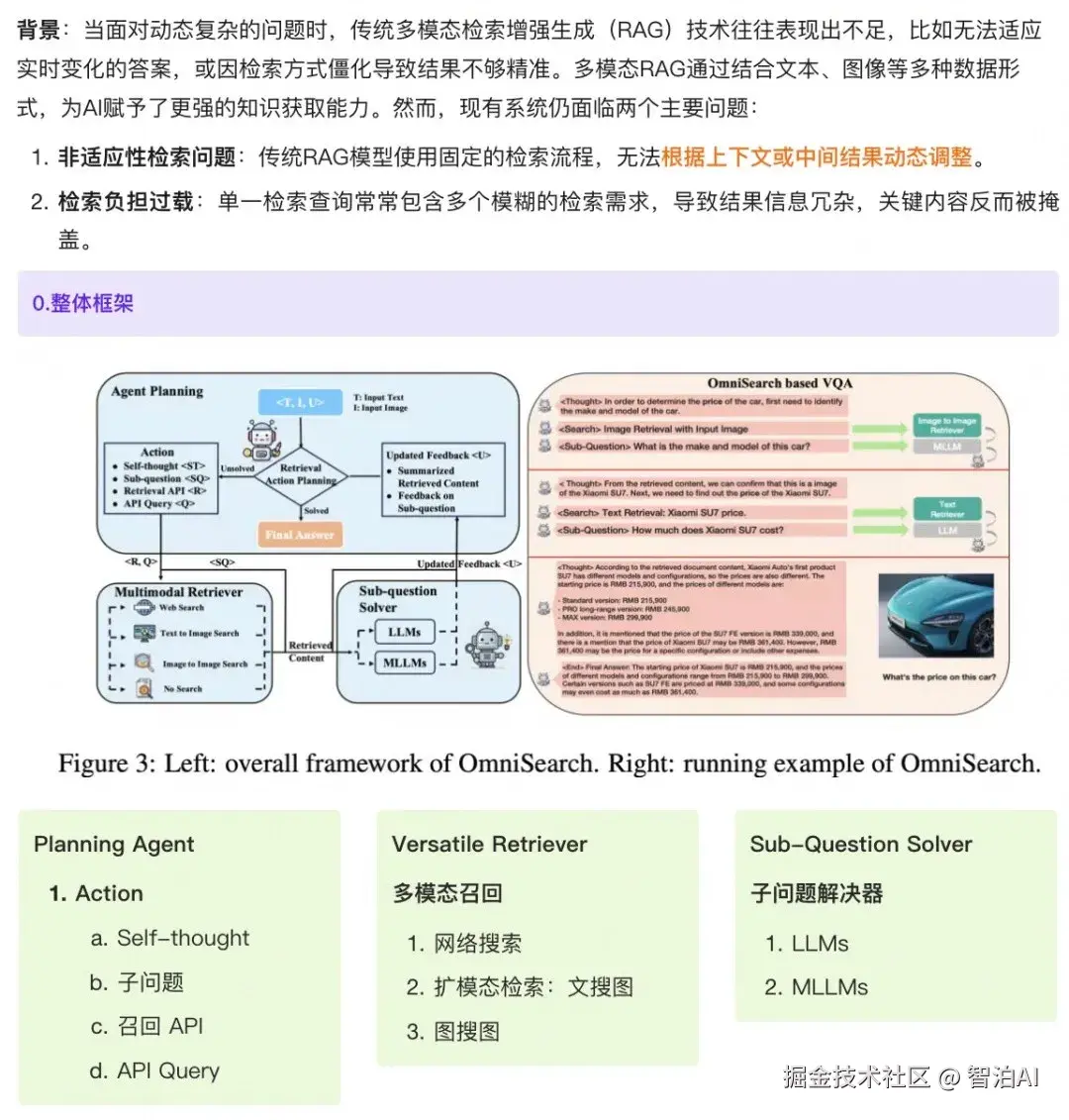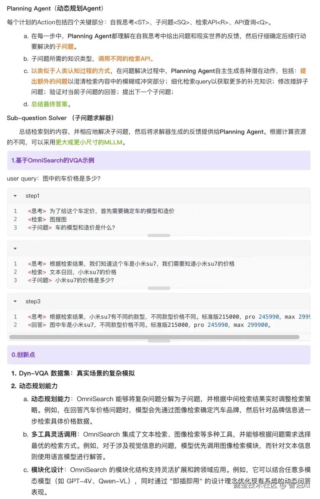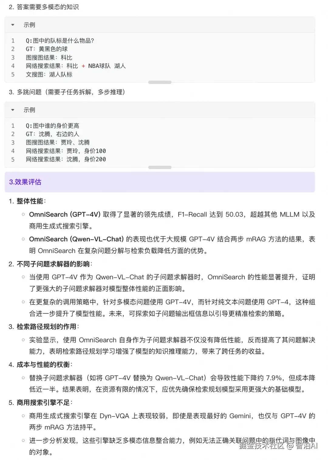 OmniSearch 能够动态拆解复杂问题,根据检索结果和问题情境调整检索策略,模拟人类在解决复杂问题时的行为方式,从而提升检索效率和准确性。