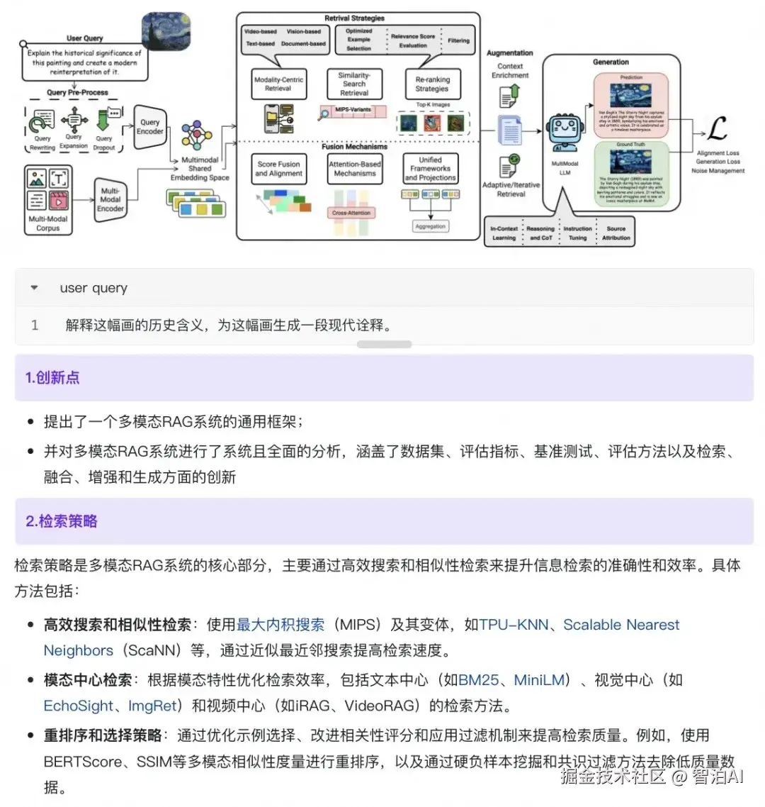 多模态RAG步骤: 查询预处理、多模态数据库、检索策略(模态为中心)、融合机制、增强技术、生成阶段、训练策略。