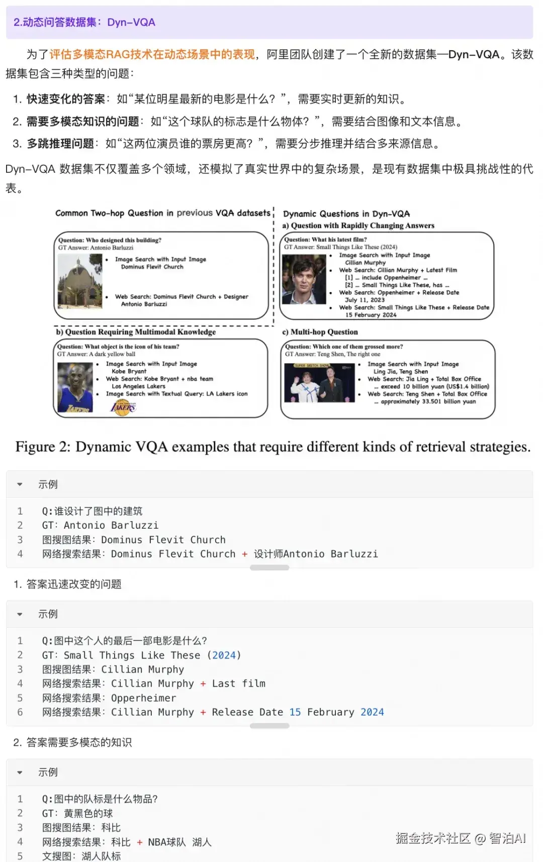 上下文丰富化: 通过添加额外的上下文元素(如文本片段、图像标记或结构化数据)来增强检索到的知识,使其更适合生成任务。例如,通过实体检索和查询重构来优化视觉问答(如MiRAG)。
