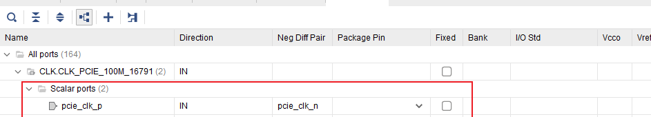 set_property PACKAGE_PIN {} [get_ports {pcie_rxp[*]}] #先将信号的管脚置空后再绑定
