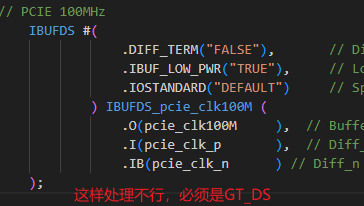 注意:pcie的参考时钟直接过IBUFDS不行,必须过IBUFDSGTE才可以绑定