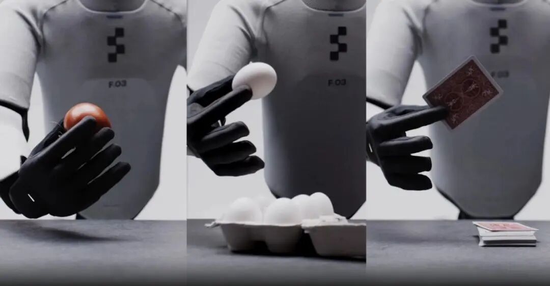 为了应对更多家庭中的复杂场景,Figure 03的手部实现了前所未有的升级,**指尖传感器可感知最低3克的微小压力,相当于一个回形针的重量;**通过自适应指尖,实现稳定抓取各种形状和材质的物体;嵌入手掌的摄像头,提供了更宽的视野与更好的视觉反馈,超精密的触觉系统的建立,让Figure 03实现了真正的家庭精细操作。