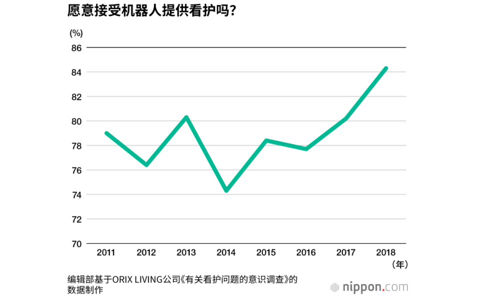 以日本为例,根据ORIX LIVING的调查数据,日本老年人对于机器看护的接受程度是整体上升的,2018年愿意接受机器人看护的人比例达到了84.3%。而在国内,由于机器人产业的快速成熟与发展,当宇树机器人在春晚上转起花手帕,国内老年人对于机器人有了全新的认识。