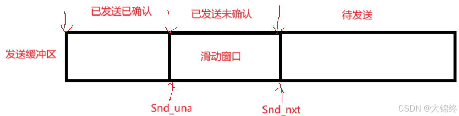 缩小:收到 ACK 时,Snd_una 右移 → 区域缩小(部分数据进入已确认区)