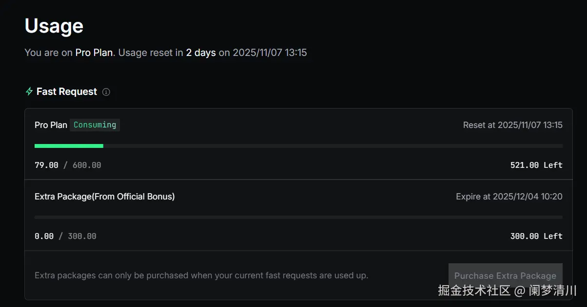 但是,作为补偿,trae给出了更多的请求次数,我去自己的账号后台也可以看到: