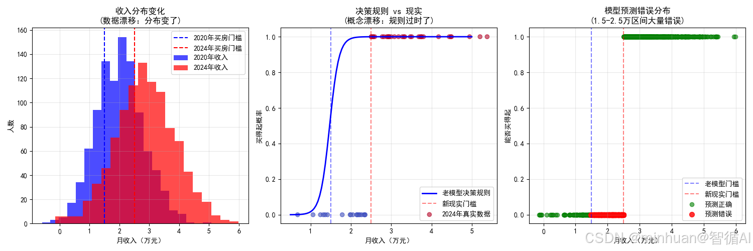 print("2. 概念漂移:同样的收入,现在代表不同的购买能力")