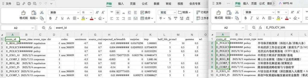 | event_type    | 事件类别     | str   | 取值:policy / regulation / corporate / exogenous |