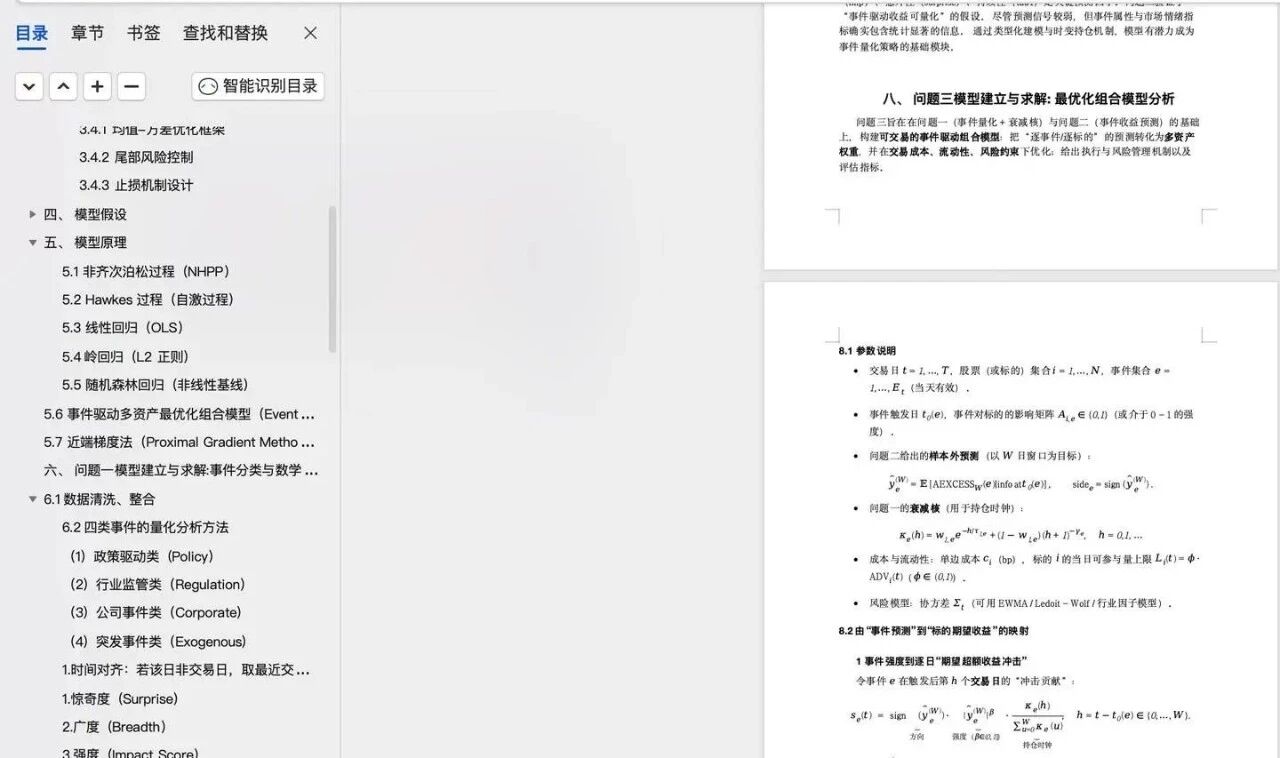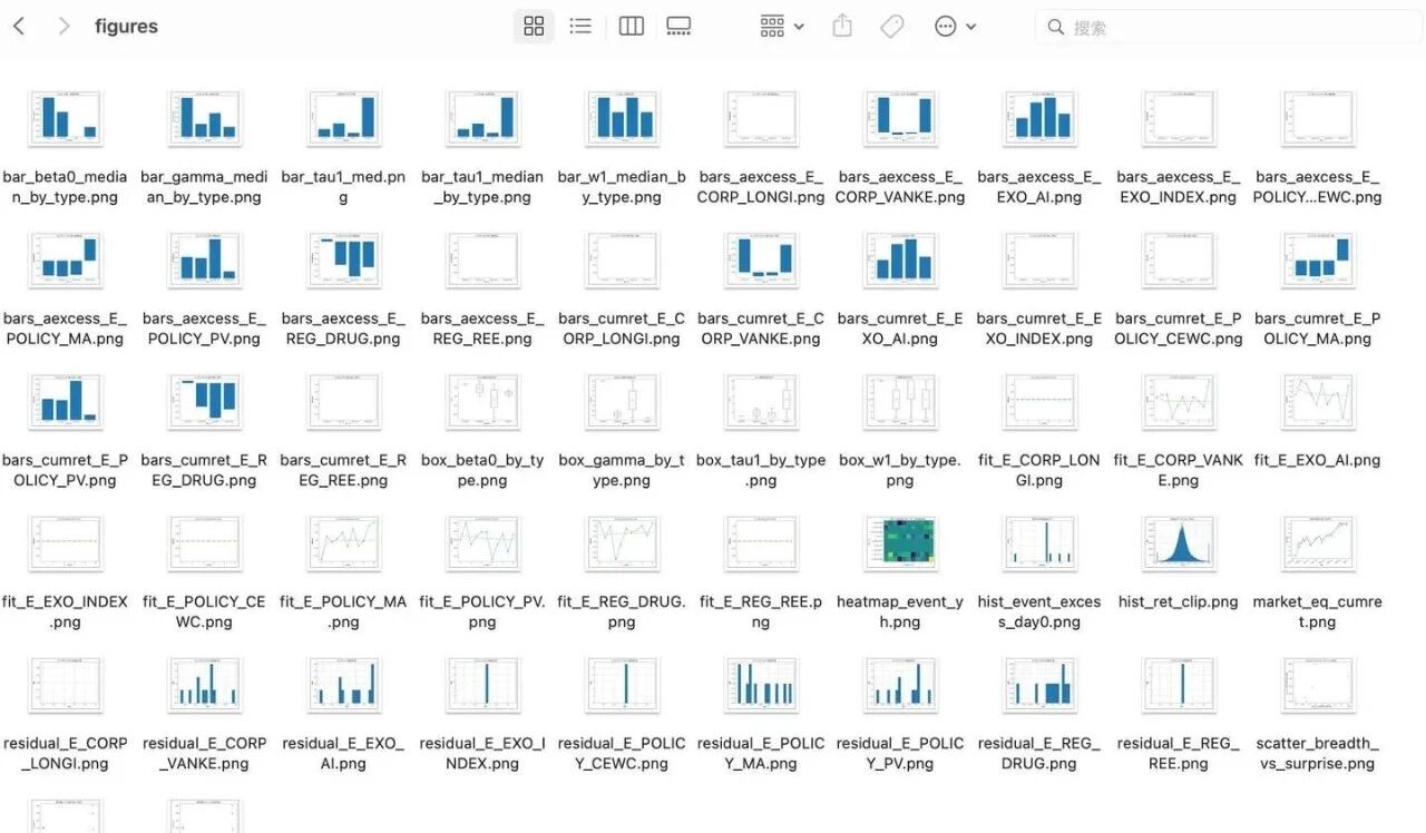 通过这些公式,每个事件的冲击幅度(β₀)与持续性(τ₁, γ, w₁)可定量化,最终形成表格化、可回归、可预测的"事件-市场反应"数据集。