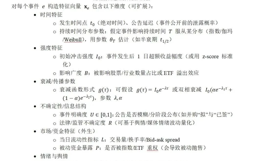 ①特征量化:从市场数据中提取时间(如事件持续天数)、强度(如3日超额收益率峰值)、广度(如受影响行业数)三类可计算指标;