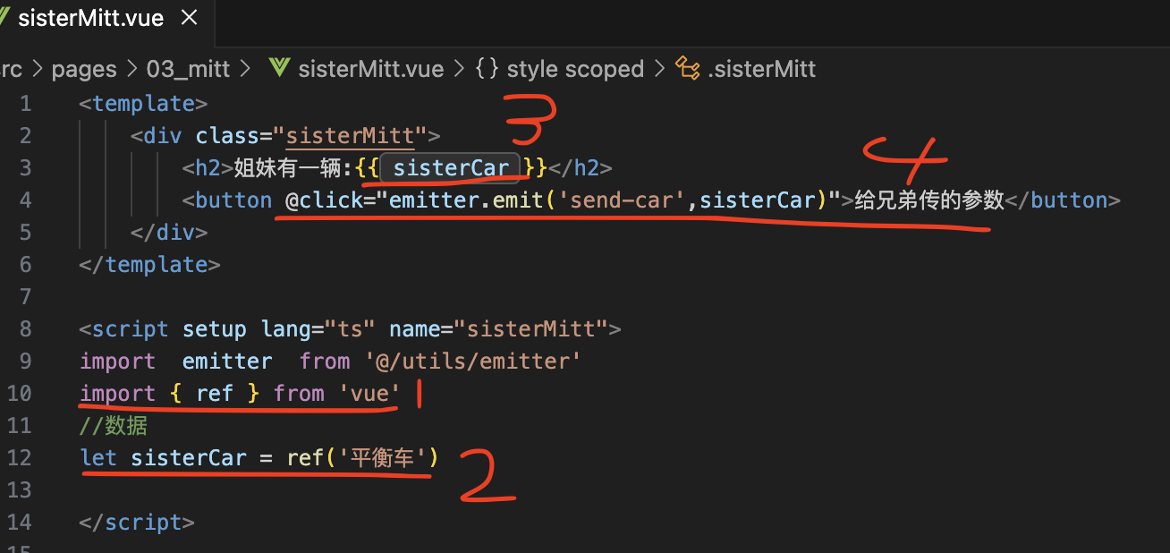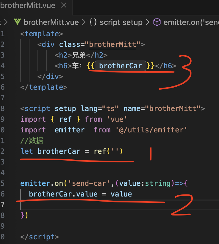 7、在兄弟页面ref腾个空位置,通过emitter.on方法传递,在界面上展示出来