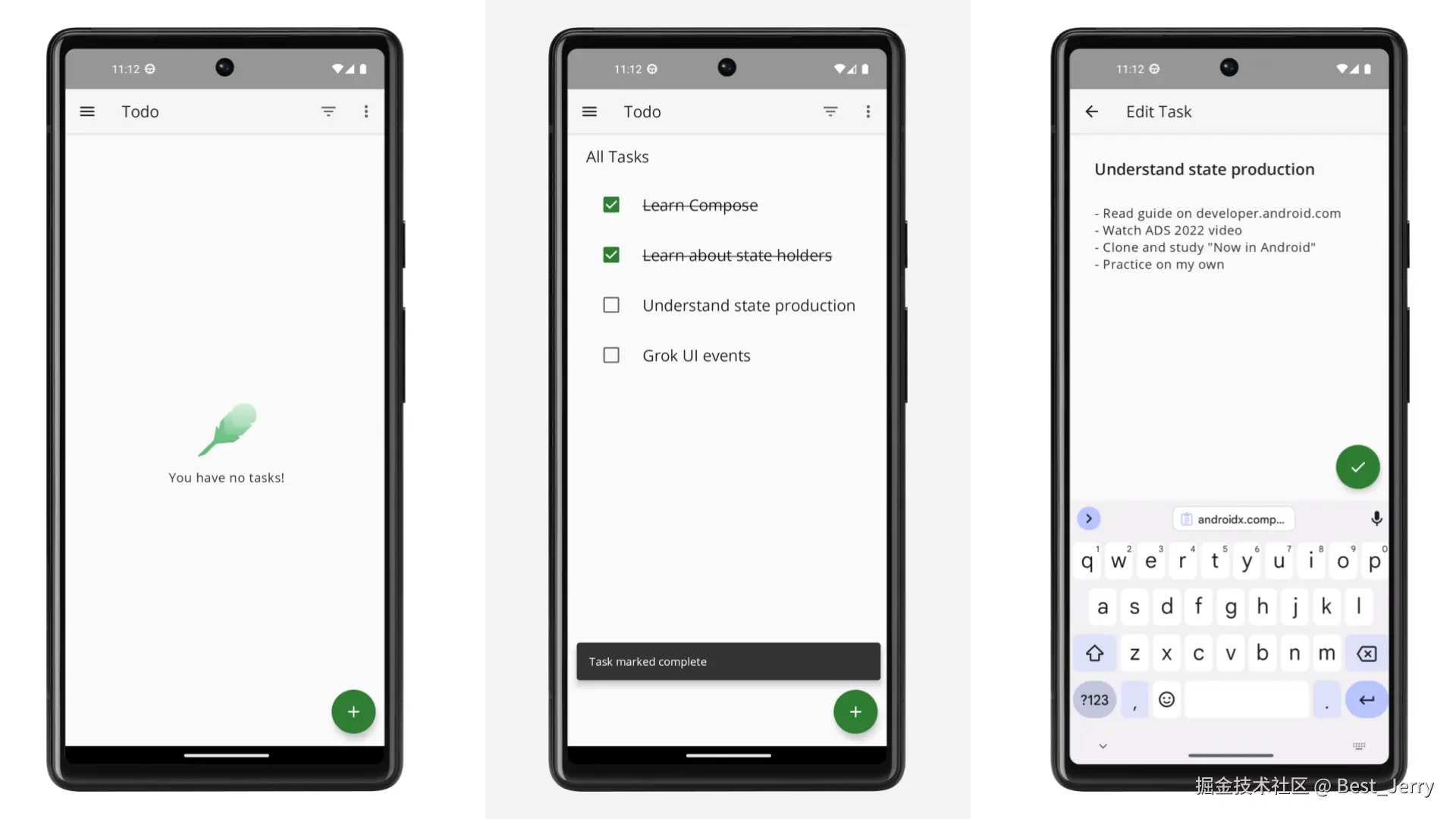 本指南将重点介绍如何在 Compose 中实现单向数据流模式、如何实现事件和状态容器,以及如何在 Compose 中使用 ViewModel。