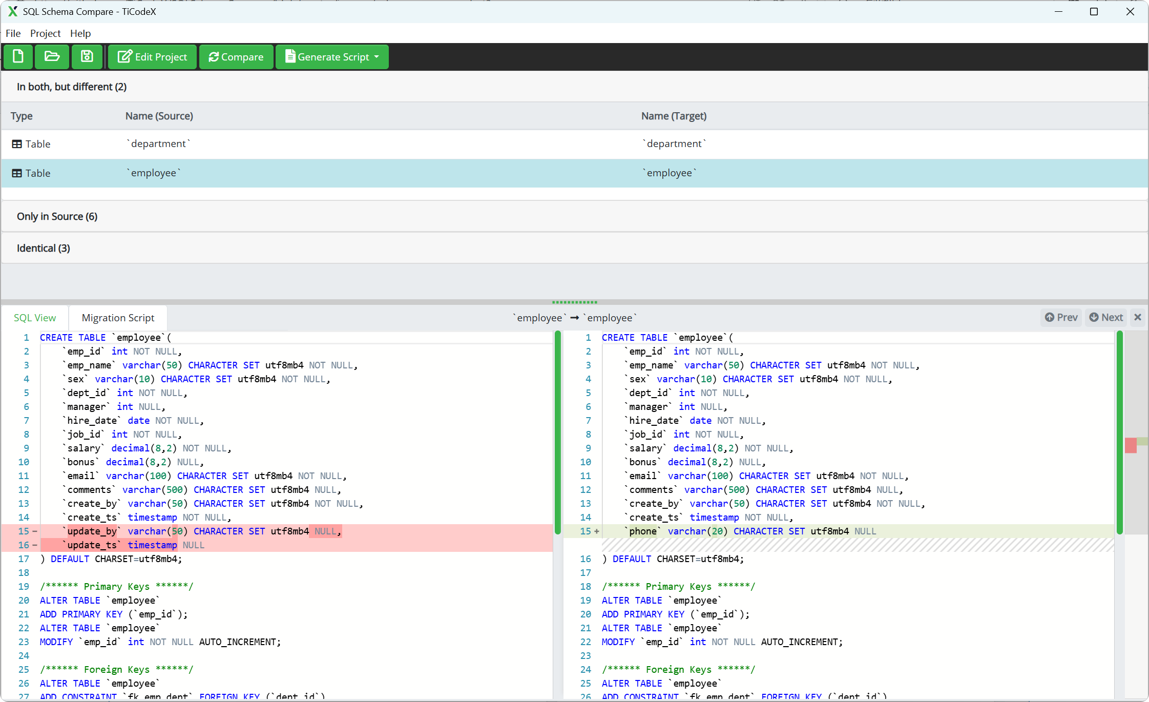 TiCodeX SQL Schema Compare 是一款免费开源的数据库结构比较和同步工具,支持跨平台和多种数据源。
